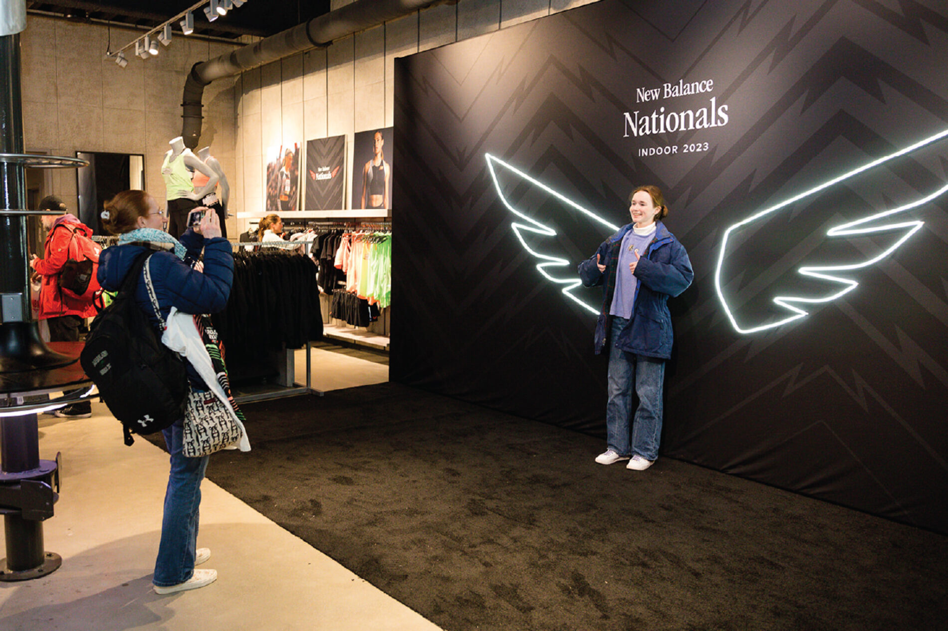 From interactive photo opportunities and athlete lounges to backpack pickup, enhanced wayfinding, and an all-American pop-up retail environment, each activation was strategically designed to drive engagement, social sharing, and point-of-purchase opportunities. Dedicated displays spotlighted the New Balance Nationals Indoor capsule collection and encouraged traffic to the flagship store across the street. Digital keepsakes extended the experience beyond the event, while ongoing logistical support ensured seamless execution—delivering a high-energy, brand-forward environment that honored athletes and elevated the New Balance presence at every touchpoint.