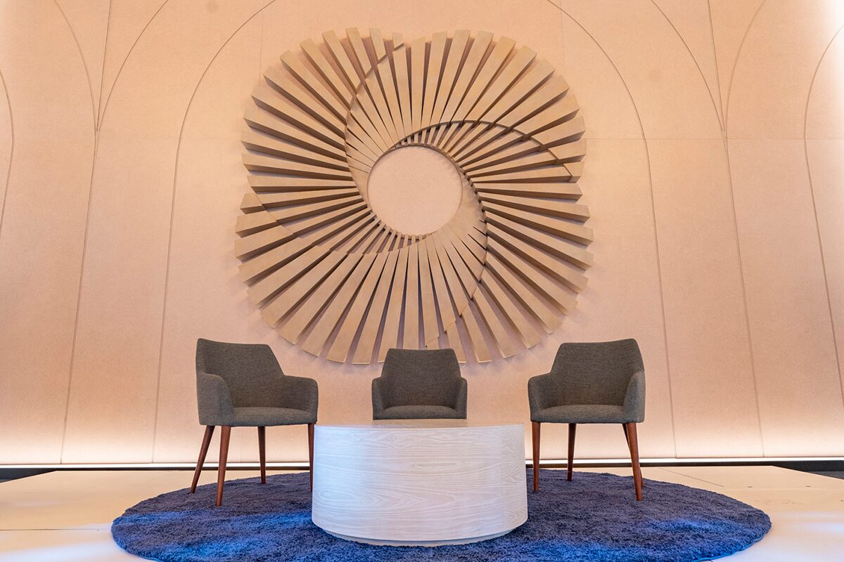 Today, as you step inside the Great Hall, you’re greeted with a breathtaking blend of the old and the new. The design masterfully combines the original architecture of the room with the sleek lines and modern materials of contemporary design. Ensuring seamless technological integration and using timeless materials, the updated space is flexible, beautiful, and perfectly balanced.