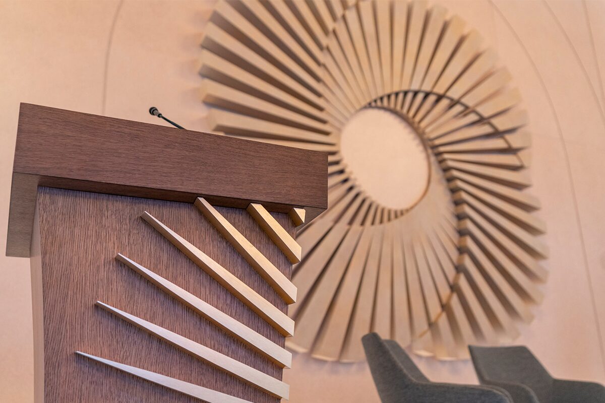 All lighting, sound and cabling have been cleverly integrated, providing a clean look, with all the functionality of a premium event space. Acoustic considerations were painstakingly considered, to create the best environment for the community to have their thoughts heard.